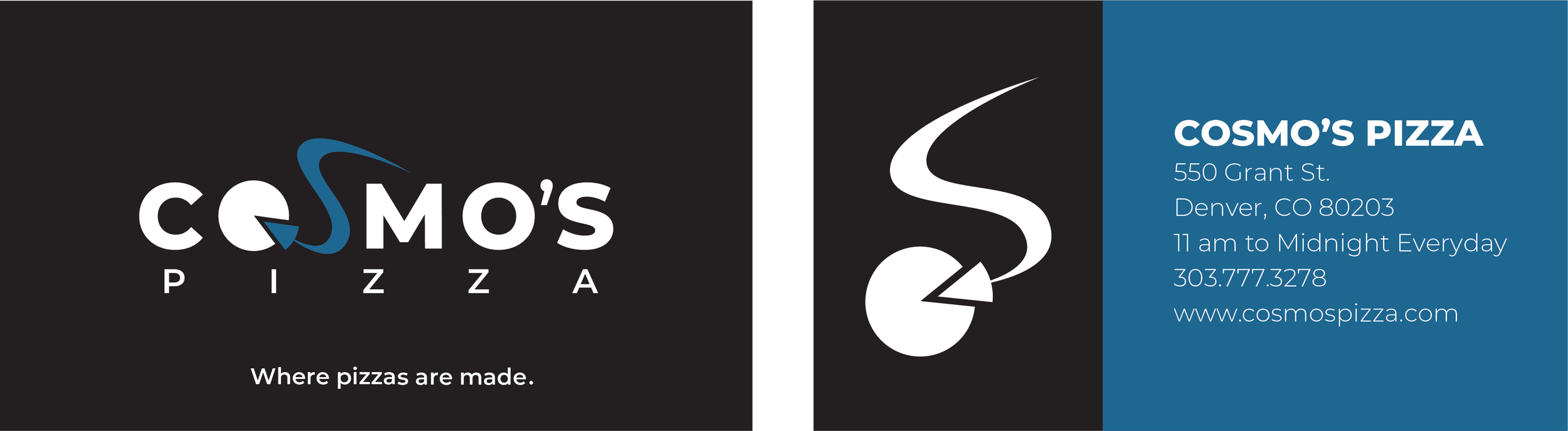 Cosmo’s Pizza is a local pizza company that is a staple in Boulder, Denver and surrounding areas. Cosmo’s started in Bouler and has grown immensely in the past decade or so. I believe they have outgrown thier branding because they are expanding to more suburban areas.